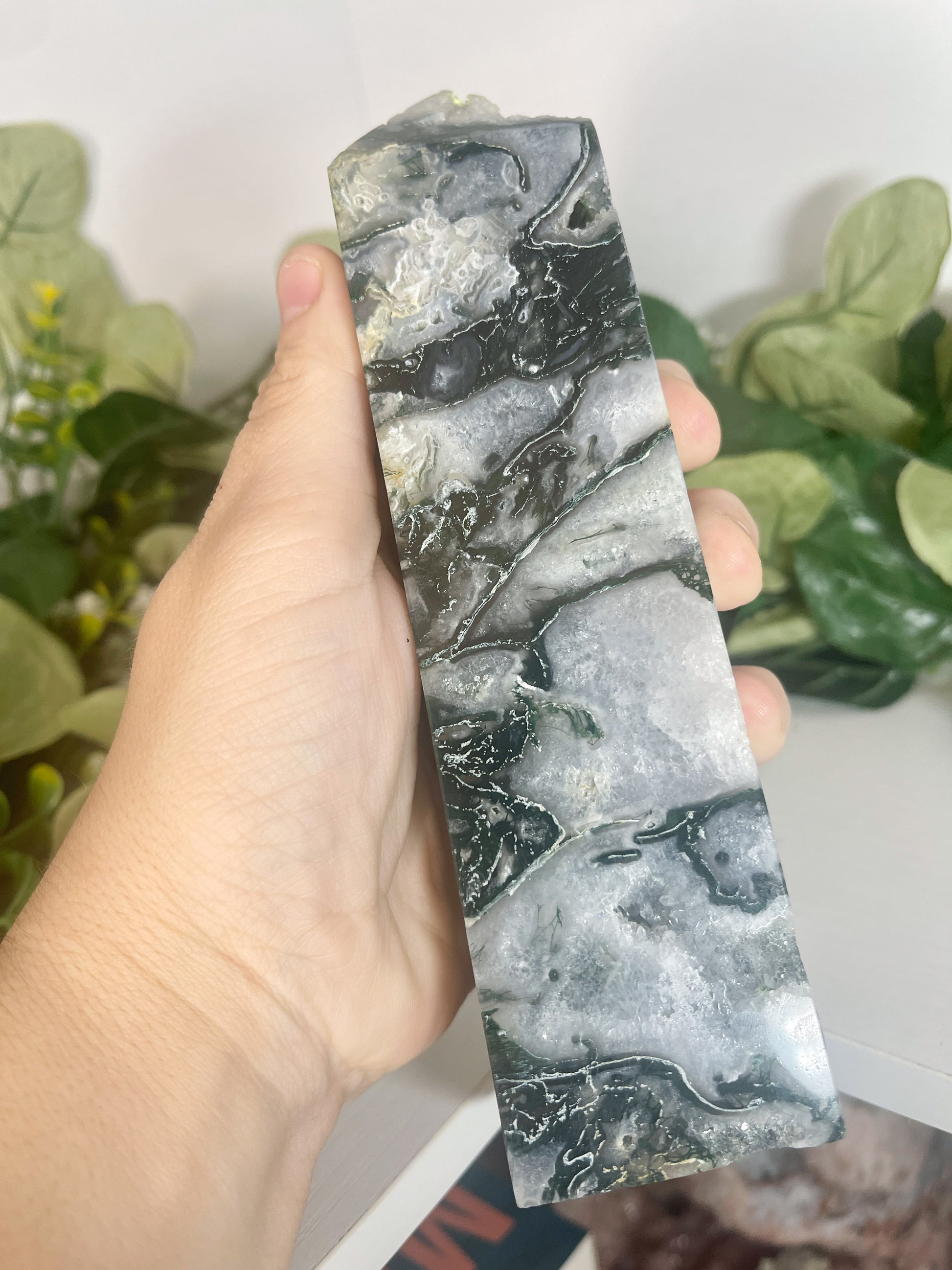 moss agate is known to help us balance our emotions of aggression. moss agate is a good crystal to carry with you if your prone to be easily overwhelmed. it brings calmness to our bodies and draws our minds closer to our hearts. moss agate is known to promote patience. this stone is known to help us form new connections and friendships in the most genuine way.