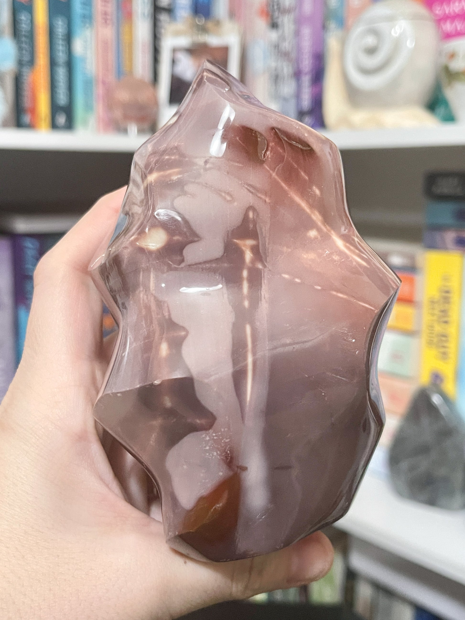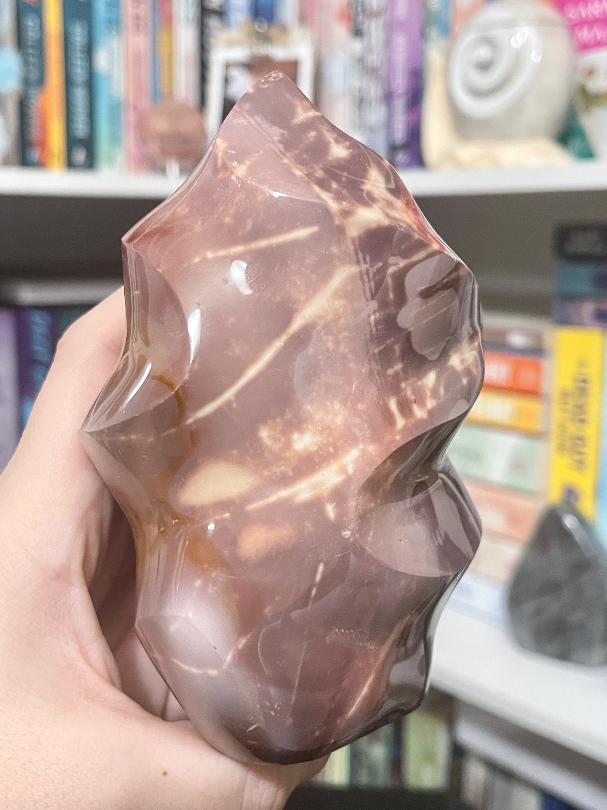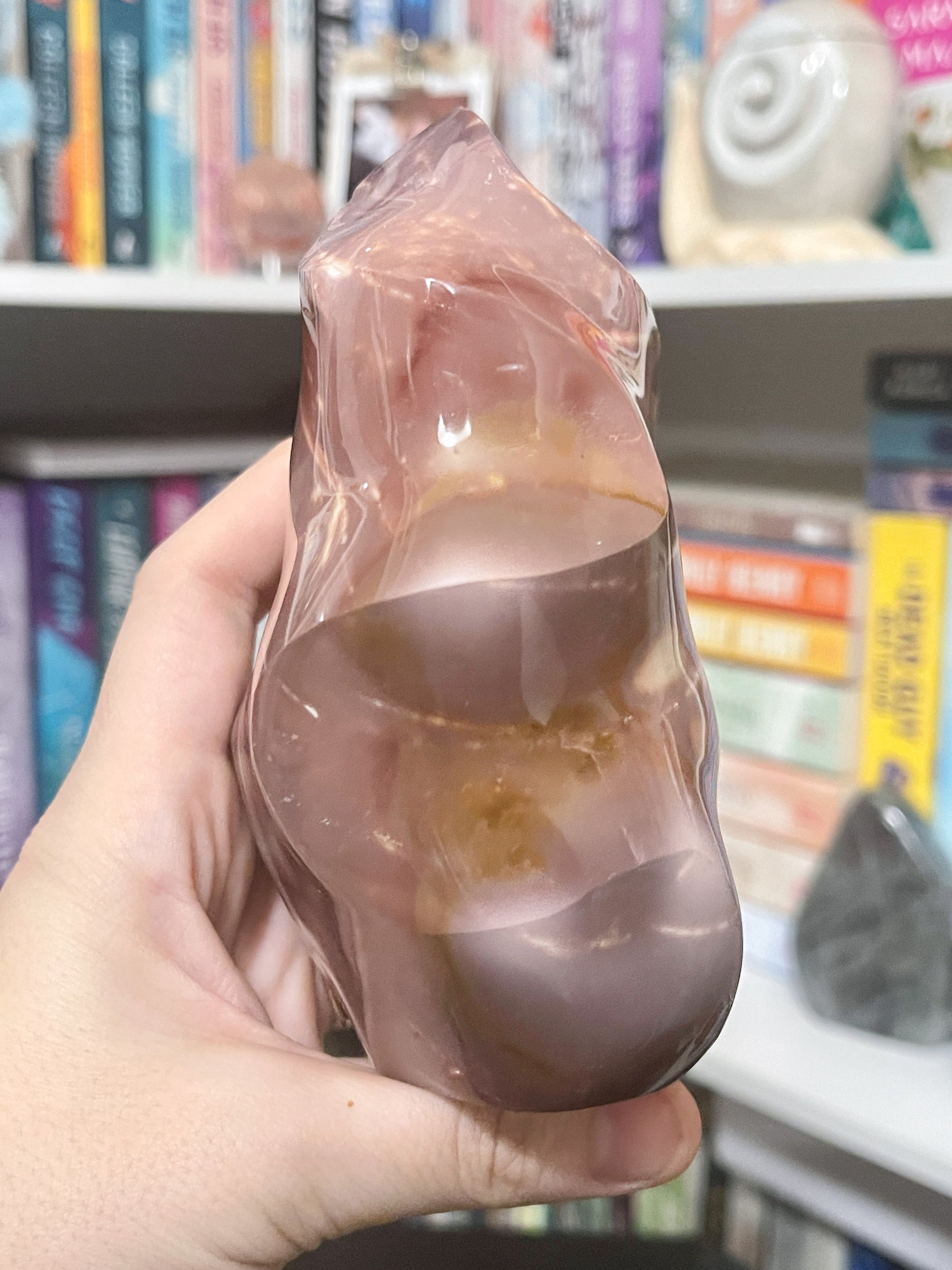 this extremely unique ocean jasper flame is perfect for your pink lover. it’s got some little spots of yellow and tan, making the perfect little combination.