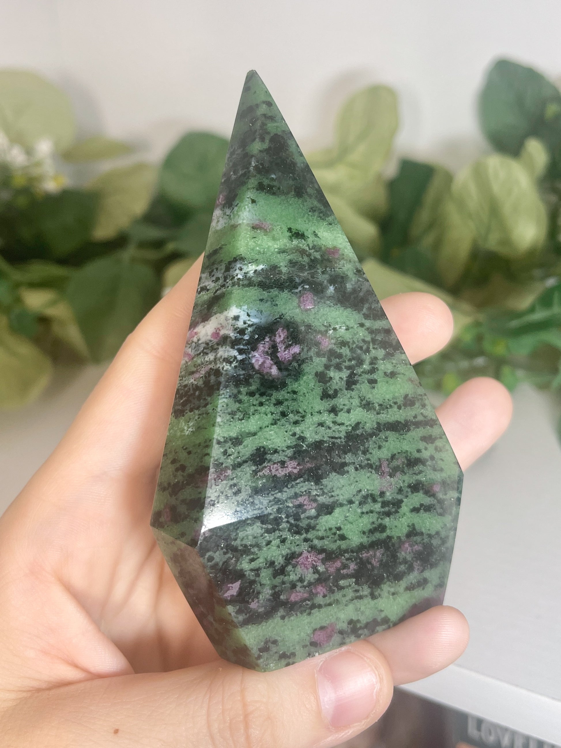 these gorgeous ruby zoisite points are perfect for any creative or ruby zoisite lover. grab your black light out and watch that ruby shine.